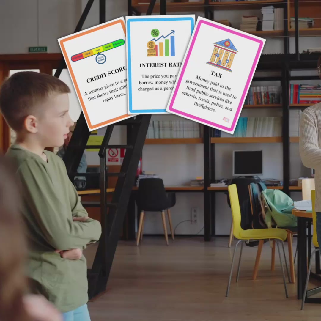 Perfect for young learners, these cards help kids build a strong foundation in money management concepts, from saving to investing. Teach them while they're young to help jumpstart their knowledge of finance today!