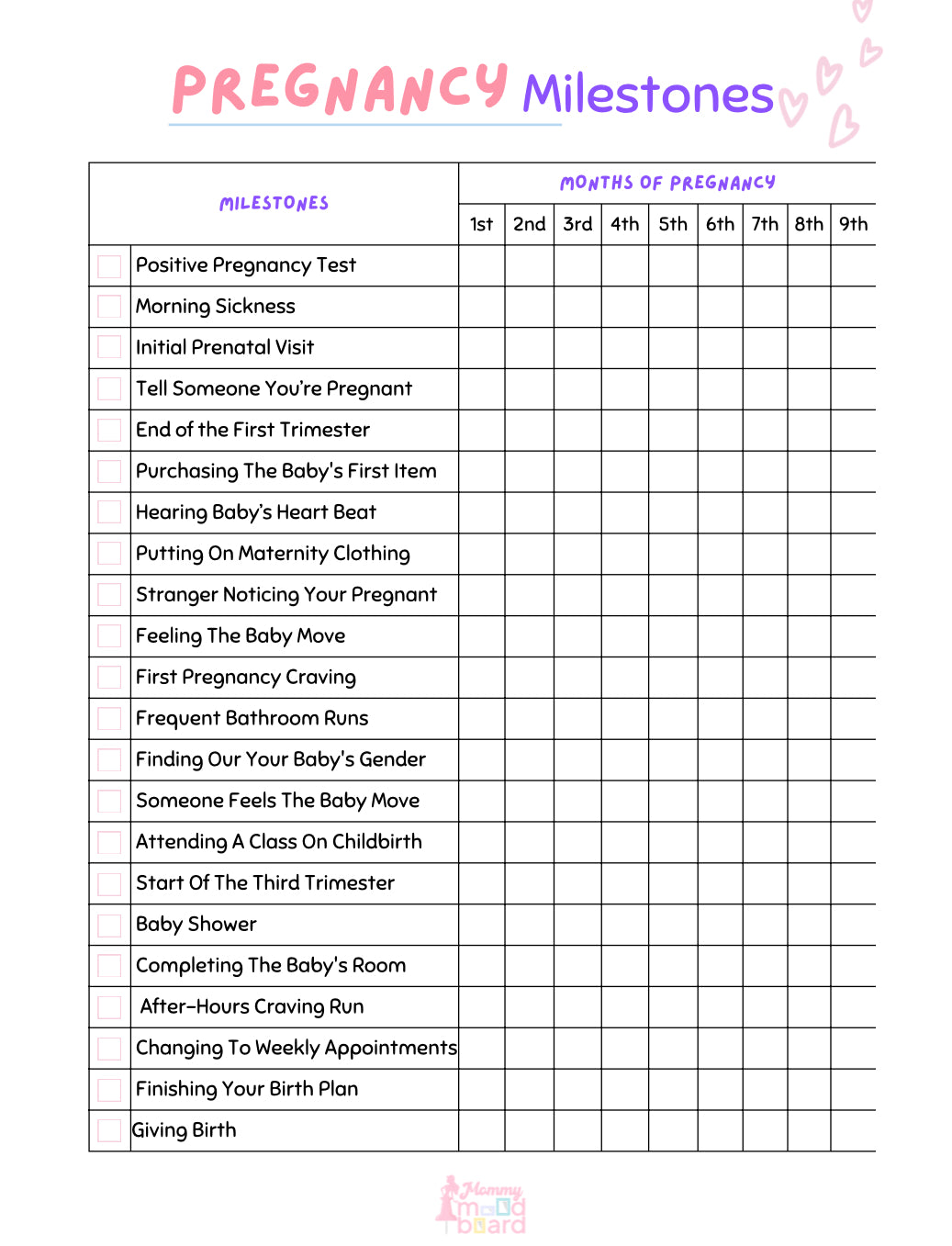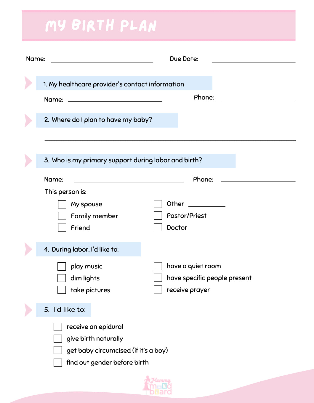 - **Baby Preparation Checklists** Organize everything from nursery set up to baby essentials, including clothing, feeding supplies, and safety items.
